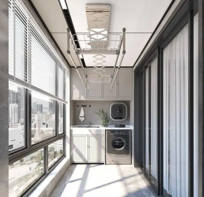 只有幾平方的陽臺(tái)用蜂窩大板,空間感釋放,大氣十足,好像多了好幾個(gè)平方。